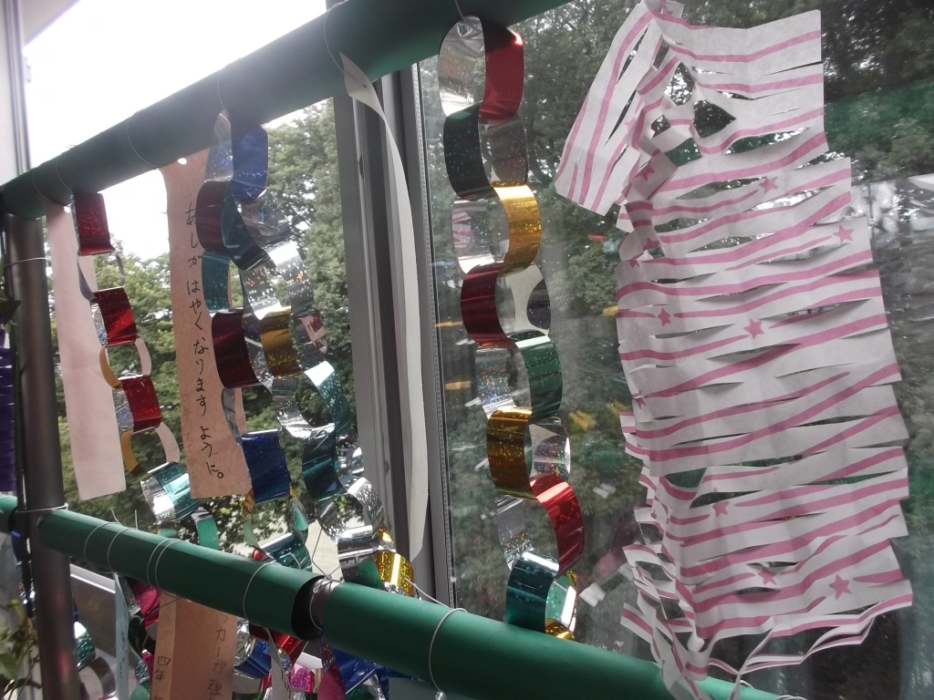 各学年、各クラスごとに七夕かざりが作られていま