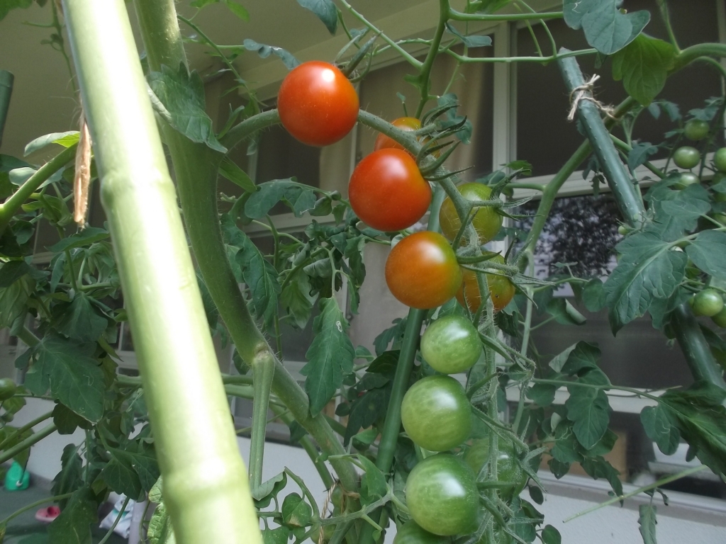 マトも大きく赤くなってきました。