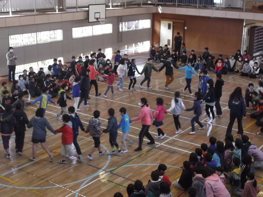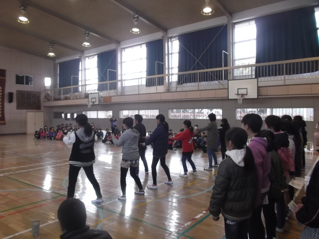 3月10日は、お別れ集会が行われました。集会では、各学年の出し物があったり全員でゲームをしたり楽しい時間を過ごしました。