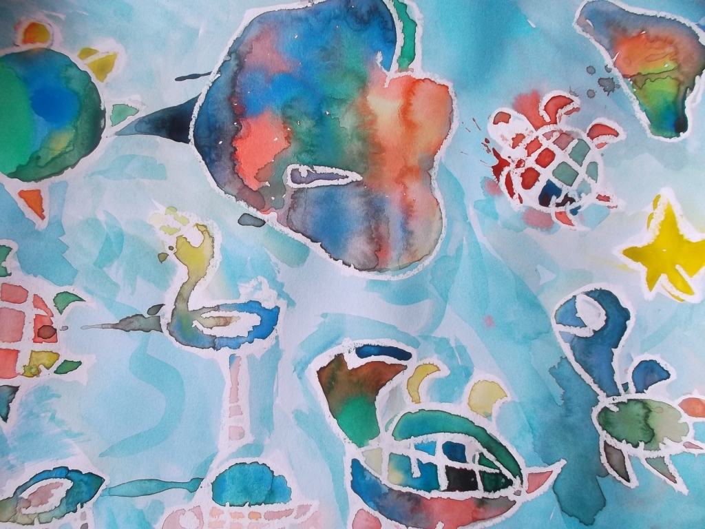 3年図工作品「にじんでできる光の世界」