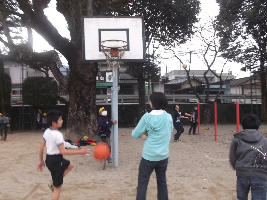 昼休みの一コマ バスケットボール、ドッジボール、サッカーで遊んでいます。