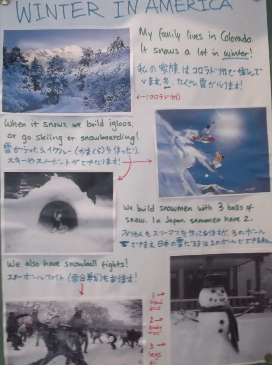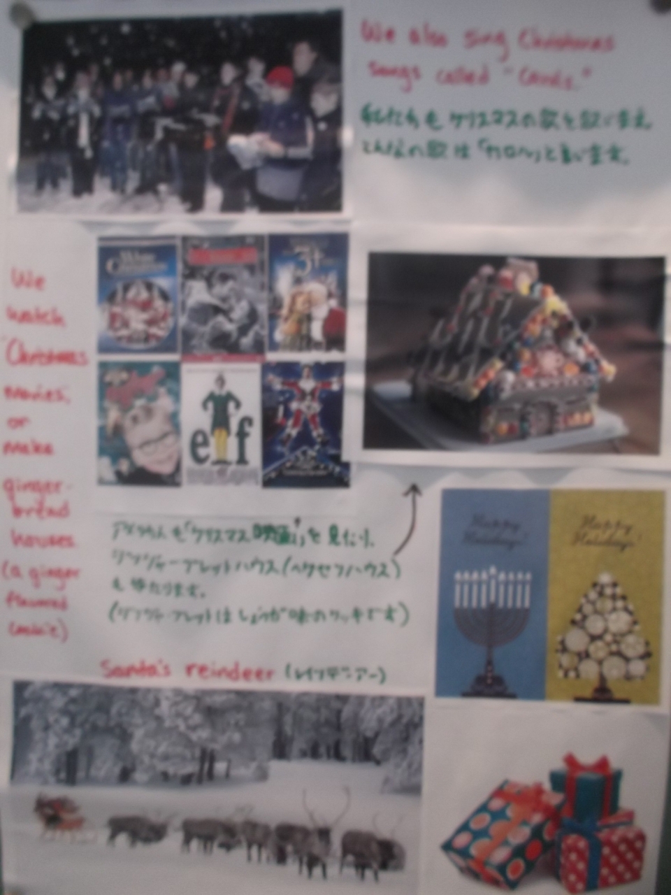 ケイトリン先生作の掲示物「アメリカのクリスマス・冬」