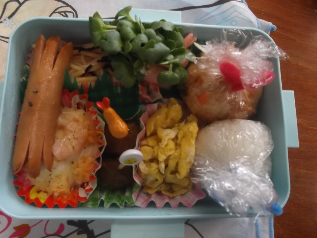 4年生のお弁当です。栄養のバランスを考えていろいろなものが入ってました。