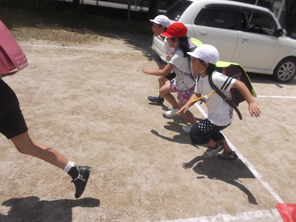 5月26日(木)に不審者を想定したひなん訓練をしました。多良木警察署からおまわりさんも来られて不審者対策を分かりやすく教えてくださいました。