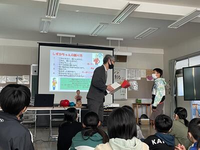 11月9日、6年生を対象に薬物乱用防止教室を行いました。講師は、学校薬剤師の白石先生です。医薬品の使い方や、お酒・タバコ・違法薬物について専門的な知識からわかりやすく説明していただきました。