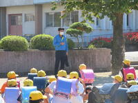 10月5日(水)に、登下校時を想定した不審者対応避難訓練を行いました。実際に不審者役の教員が車に乗って、子どもたちに声をかけたり、追いかけたりして、不審者に会ってしまった場合の対応を訓練しました。帰る際、一人になる子もいると思います。怖くて声が出ない・足がすくむなど、十分に考えられますので、保護者の皆様には、子どもたちの防犯ブザーが鳴るか、鳴らしやすい場所に付いているか、の確認をお願いします。また、地域の皆様には、子どもが下校する時刻に合わせて散歩をしていただくなど、子どもたちが被害にあわないようにご協力をいただければと思います。