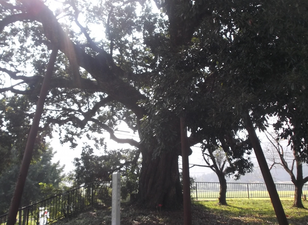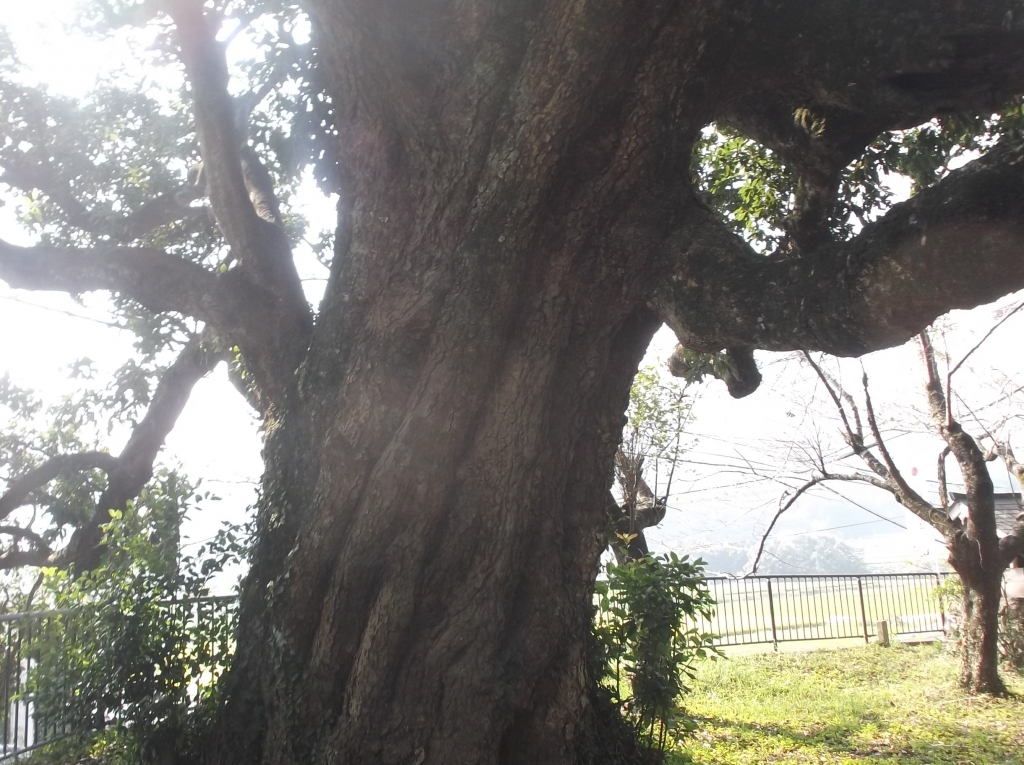 山上八幡神社の敷地内にとても大きな木がありました。「ベニタブ」という木だそうです。船をつくるときに用いられることもあるそうです。