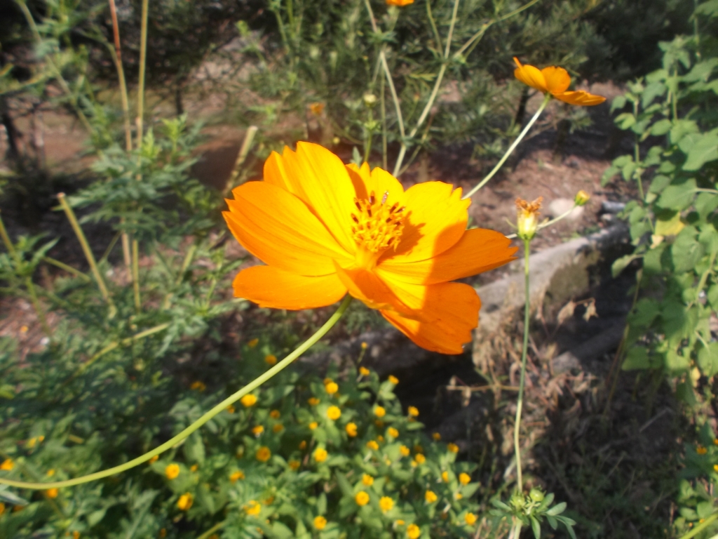 キバナコスモスがさいていました。また、彼岸花も咲いているところもあり、秋を感じました(9月10日)