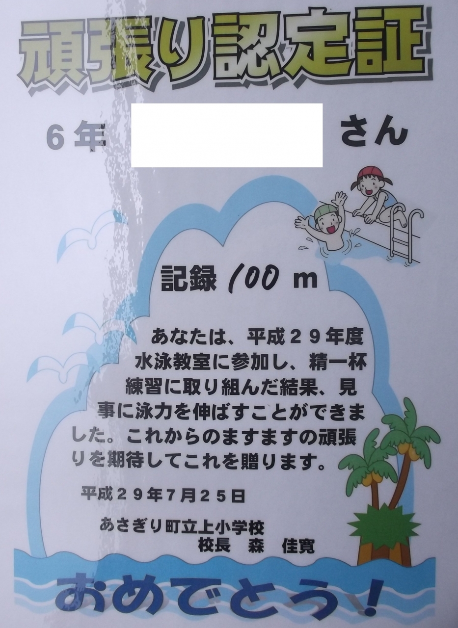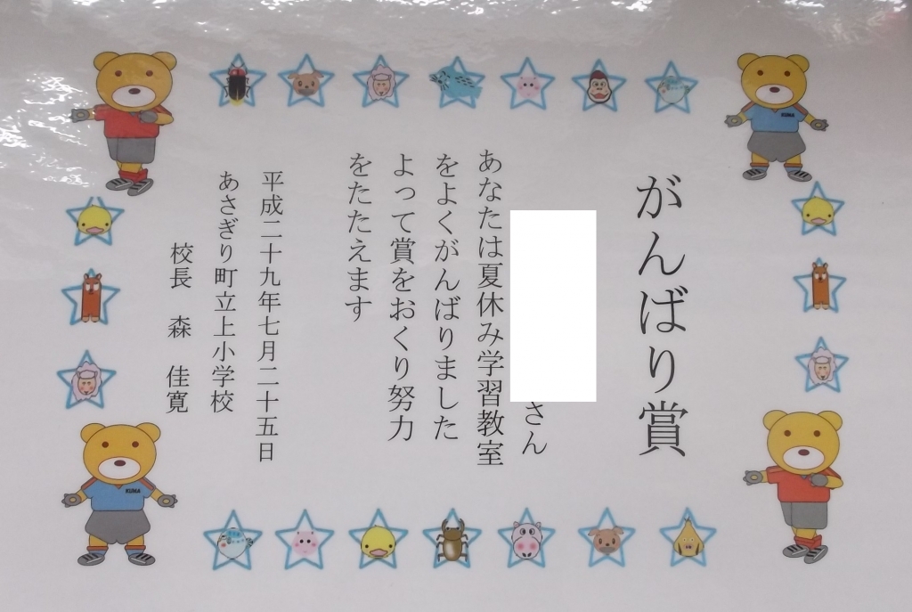ました。子どもたちには、「がんばり賞」が渡されました。
