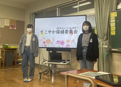 2/9の上っ子集会では、すこやか保健委員会の児童がzoomを使って発表しました。