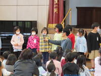 4月14日(金)にお見知り集会とお見知り遠足がありました。雨天のため、校内遠足となりましたが、集会は体育館で全員集まって行うことができました。集会では、1年生が自分の名前と好きなものを言って自己紹介をした後、上小向上委員会の進行で6年生が考えたクイズをして楽しみました。これから少しずつ他学年のお友達を増やしていってほしいです。