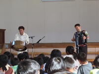 11月8日(水)に芸術鑑賞会を行いました。今年は、スティールパン奏者とアコーディオン奏者「いざぶろう」のお二人に来ていただきました。スティールパン・アコーディオンの仕組みやクイズ、「アンダー・ザ・シー」などの演奏など、子どもたちも楽しく鑑賞していました。また、みんなで手拍子や足踏みをして曲に参加したりもしました。1年生から6年生まで、とても楽しい1時間となりました。「いざぶろう」のお二方、ありがとうございました!