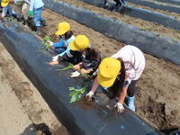 JA青壮年部の方々に協力していただき、5月19日木曜日に1~4年生がいもの苗植えを行いました。1年生は4年生のお兄さん・お姉さんとペアになって行いました。始まる前には青壮年部の方に苗の植え方を教えていただきました。子どもたちは真剣に話を聞いて、苗植えをしていました。秋の収穫が今からとても楽しみです。ご協力してくださったJA青壮年部のみなさま、ありがとうございました。