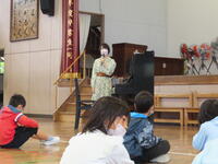 11月1日(火)に月足さおりさんによるピアノコンサートがありました。「アメイジング・グレイス」や「真っ赤な秋」、「夕やけこやけ」など、みんなが知っている曲から、月足さんが作曲した「しずく」「さくらいろのりゅう」などたくさんの曲を弾いていただき、子どもたちも1時間、静かに真剣に聴いていました。終わってからは、「あの曲知ってた」「さくらいろのりゅうの絵本、この前借りて読みました」など、感想を言い合っていました。