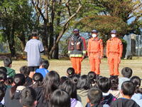 12月6日(火)に、火災避難訓練を行いました。理科室が出火元と想定し、全校生徒が運動場に避難しました。事前に避難経路と「お・か・し・も」を確認し、スムーズに避難を行うことができました。訓練後は校長先生や消防署の方のお話を聞き、避難するときに気を付けること、火遊び等火災につながるような遊びはしないことが大切だと改めて確認しました。