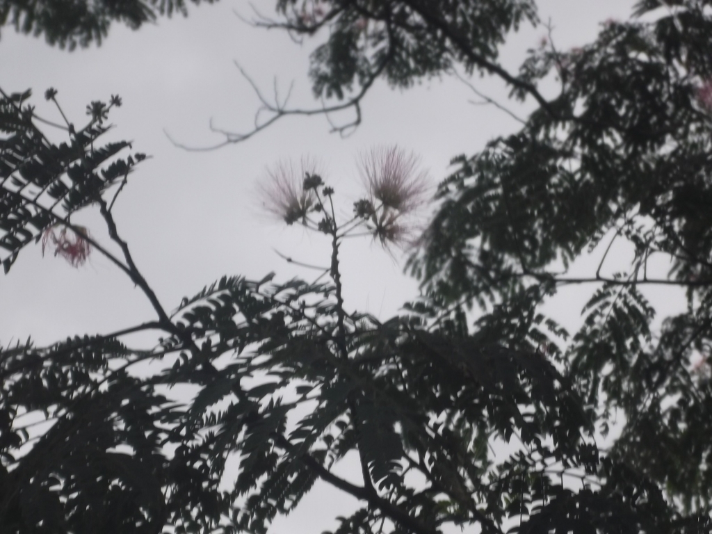 学校から永山方面に行くと、「宮川内川」があります。宮内川は、前日までの大雨の影響でかなりの水量でした。川沿いの道を上流に向かって歩いていくと、「ネムノキ」が何本もありました。ちょうど花の季節で花が咲いていました。