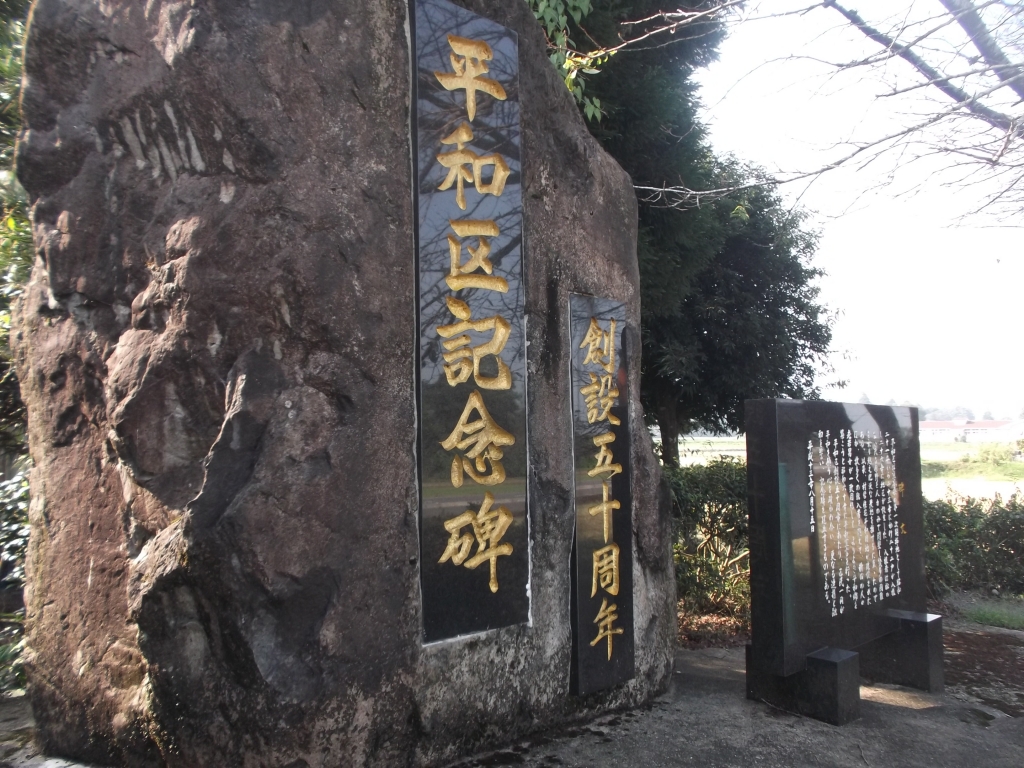 平和地区も戦後まもなく開拓が進められました。大きな開拓の記念碑が建てられていました。広い田畑が広がっています。