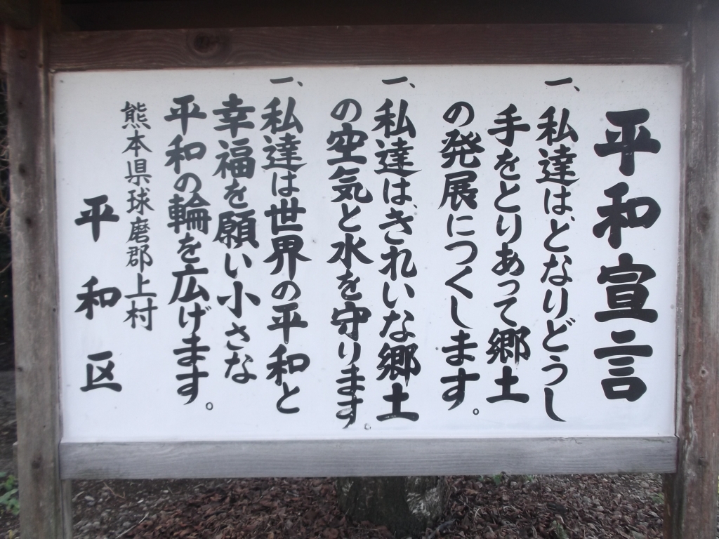 「幾多の困難を乗り越え、肥沃な農地を擁するに至ったこと」や「新旧の人々、老若男女が一致団結して、よりよき平和郷を築こうと昭和60年に平和宣言を行った。」と碑文にあります。