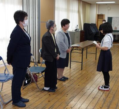 子どもたちからは歌のプレゼントを、明香里のみなさんからは手縫いの雑巾をいただきました。
