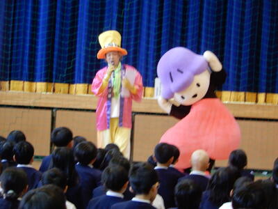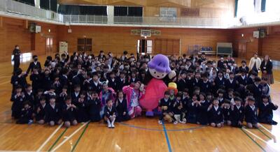 12月4日には熊本県人権啓発キャラクターのコッコロ隊が牛深小に来てくれて、友達を大切にする心を学びました。