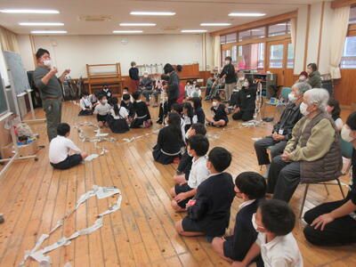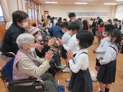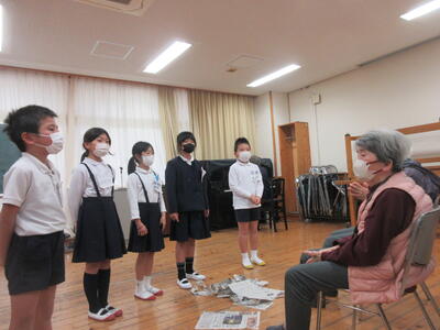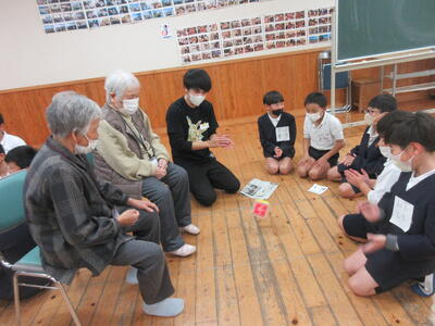 12/11 本校の校区にあるグループホーム明香里の利用者の方々と3年生が交流会を開きました。コロナ禍でしばらく中断していた交流を、今年度やってみましょうということになりました。