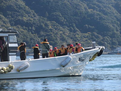 12/18 「体験の島づくり事業」の一環で、6年生が御所浦に行きました。恐竜の島博物館を見学したり、船でクルージングしながら地層を観察したりして、しっかり理科の学習を行ってきました。