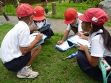 理科の学習で、日本庭園に生き物の観察に行きました。