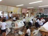 模造紙に大きく書いてきたものを見せたり、実物を見せたりしながら発表する子どももいます。