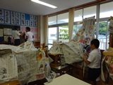 図工の「包んでアート」という単元で新聞紙やビニールを使って教室にあるいろいろな物を包み