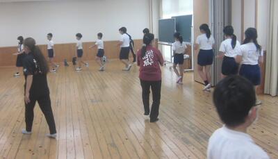 そこで本番に向けて、早水社中の皆様が踊りに指導に来てくださっています。1つ1つの踊りの意味を説明していただき、指先や目線など細かい動きなどを教えてくださいました。また、野田先生、田苗先生、福本先生に教えていただいた「牛深ハイヤ節」の歌も発表します。一生懸命教えてくださった先生方への感謝の気持ちを持って、心を込めて発表します。