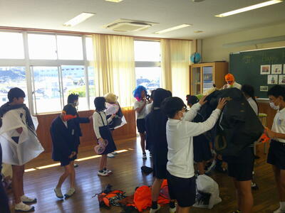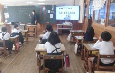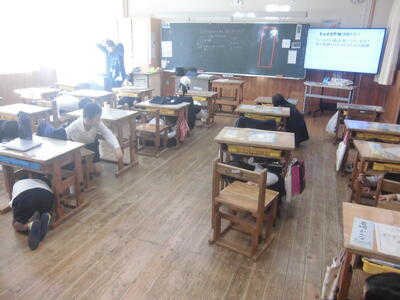 11/7 今日の「牛深ん子安全の日」の取組は、シェイクアウト訓練を行いました。担当が説明資料も用意して、各学級で指導していました。