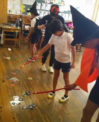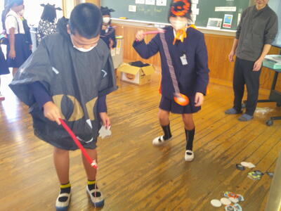 外国語科の学習では、外国の文化に親しむということでハロウィンにちなんだ活動が行われていました。