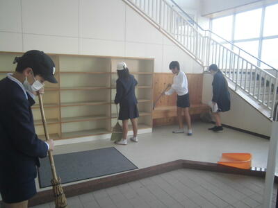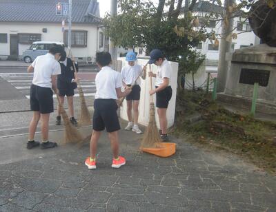 朝から、校門のところに数人の6年生がいました。「何やっているの?」と聞くと、「今日は就学時健診でお客様がたくさん来るから、きれいにしとこうと思って」と掃除をしていたのです。後から登校した他の6年生も参加し、どんどん数が増えていきました。進んでよいことを行う6年生の姿に感動しました。かっこいい6年生の姿を他の学年もしっかり見ておいてほしいです。
