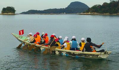 〈ペーロンをこぐ練習をして、いざ出発!〉