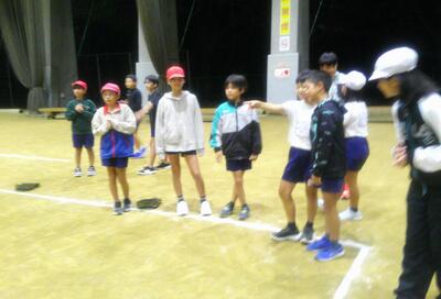 〈夜の活動 ペタンクで盛り上がりました〉