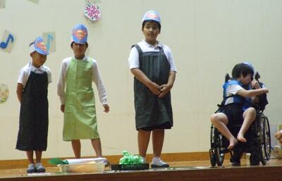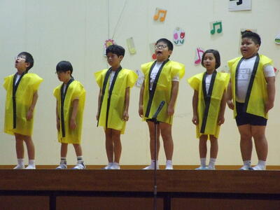 スイミーをはじめ、海の中の楽しい仲間たちのかわいい衣装を手作りして、楽しく発表していました。