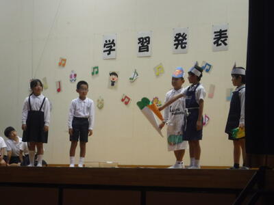 スーパーマーケット(ゆめマートさん)見学で分かったことや気づいたこと、感想などをまとめ、劇にして発表しました。聴いている人にもはっきり分かるようなハキハキとした発表でした。
