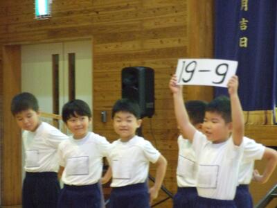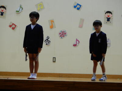 1年生の発表では定番なのですが、1年生らしい元気で明るい音読の声が体育館中に響き渡っていました。大きな声で、おなかに力を入れて、はきはきと発表できました。
