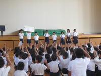 10月15日(火)の全校集会では、「委員会からの発表」がありました。今回は、放送委員会と栽培委員会が、活動の様子を発表してくれました。