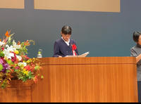 この催しに伴い、天草の子どもたちを対象に、福祉に関連のある絵画と作文の募集が在りました。牛深小学校からは、「絵画1人、作文2人」が入賞しました。その中の一人、4年生児童が、表彰式において作文を朗読発表しました。以下がその様子です。