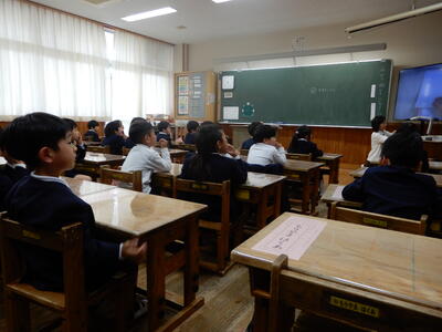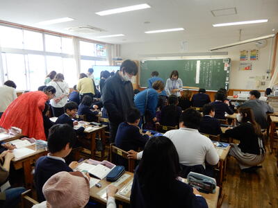 1年生にとっては小学校入学後、初めての授業参観だったので、みんないつも以上にはりきって学習していました。他の学年の子どもたちも、多少そわそわしながらもいつもと同じように授業に取り組んでいました。
