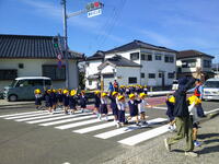 〈上手に横断歩道を渡っています。渡りながらも左右確認が大事です。〉