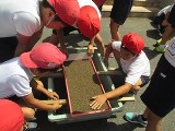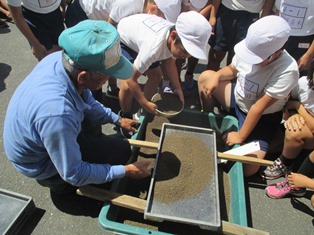 4年生が米づくり体験をしています。今回は、種まきです。苗が育ったら