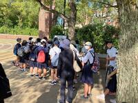 環境委員会は昼休みに縦割り班を使って落ち葉ひろいのボランティアを