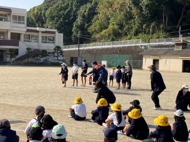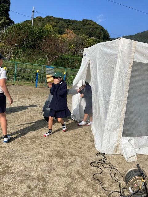 全校児童が避難し終わるのに約2分、ずいぶん早くなりました。