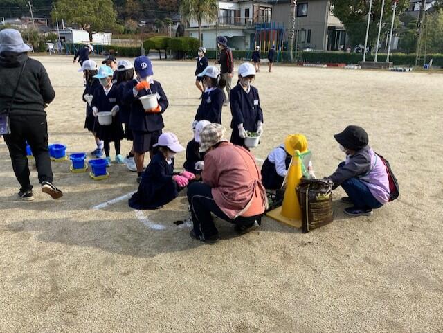 行いました。拾った落ち葉は畑に入れて肥料にします。頑張って袋いっぱいに