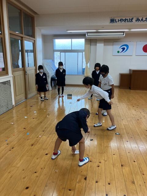 5年生の総合的な学習の時間の中で年間通して行ってきたお米作りの最後の活動として、収穫後の稲わらでしめ縄を作る体験をしました。地域でしめ縄づくりに取り組まれている皆さんにご協力いただき、それぞれお気に入りのしめ縄を完成させることができました。