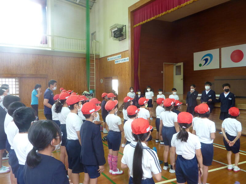 今日の児童集会では、6年生が本年度の「笑顔大作戦」の全容について、東っ子全員に説明してくれました。