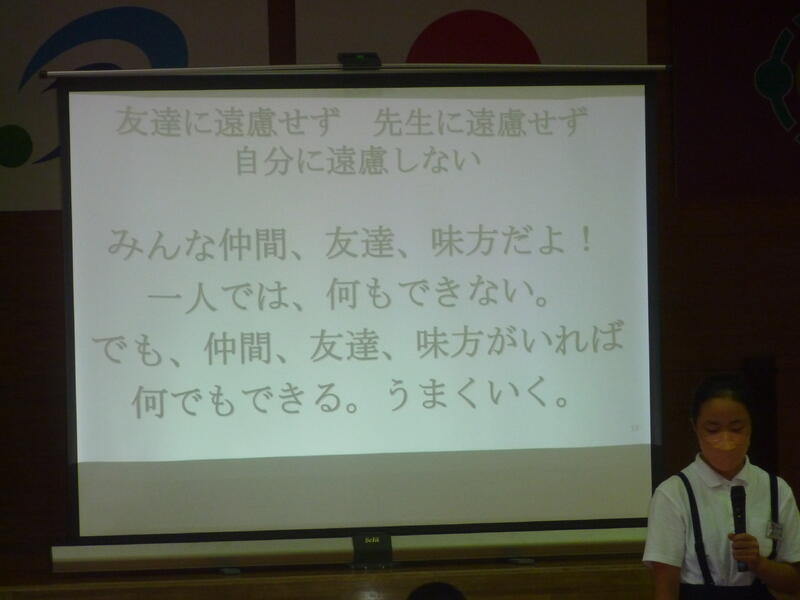 全員が役割分担しながら、上手なプレゼンテーションでした。これからの活動と評価を楽しみにしています。頼もしい最上級生に感謝しています。