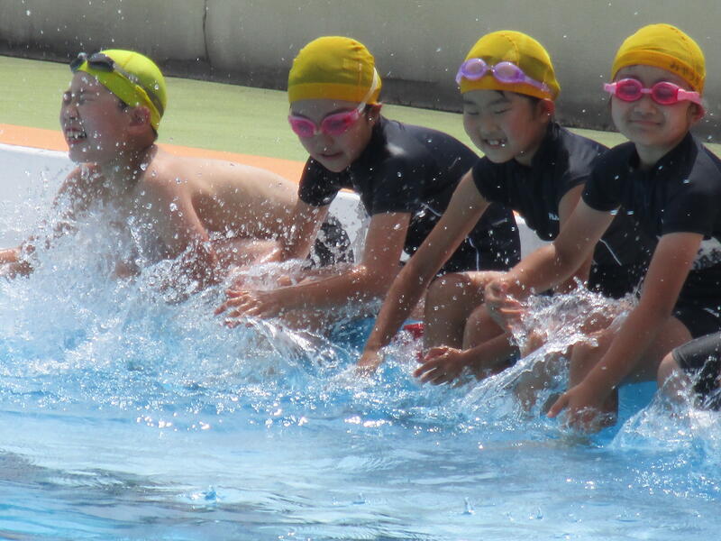 水泳学習にむけて、プール開きを行いました。学年部ごとに実施し、水の感触を味わい、楽しそうに時間を過ごしました。プール掃除していただいた中学校の生徒さん、先生方に深く感謝いたします。